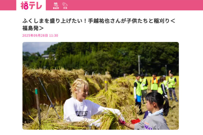 【YAHOO!ニュース】「食べられることが当たり前じゃない」手越祐也さん 子どもたちと稲刈り 福島・郡山市