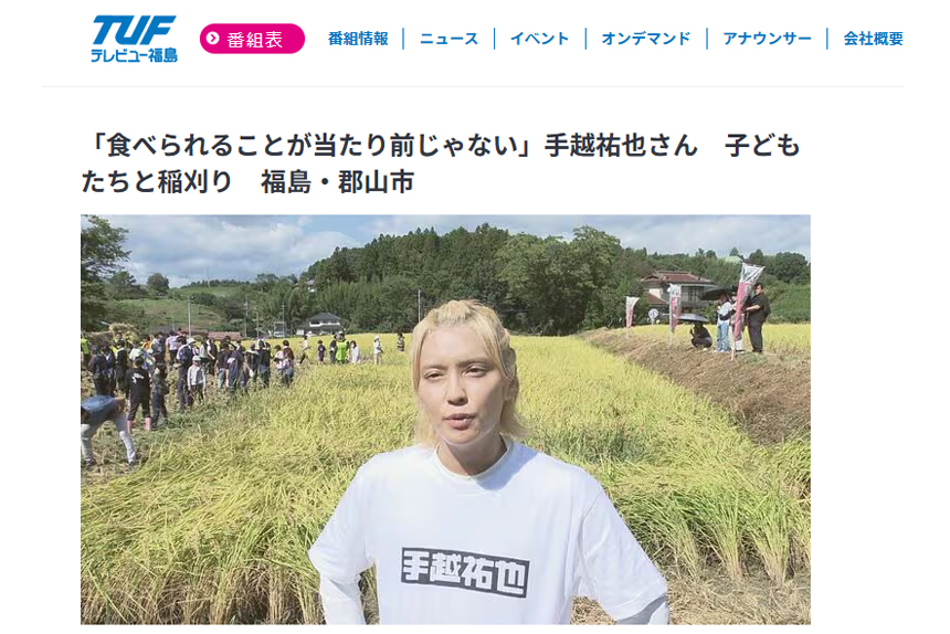 【TUF】「食べられることが当たり前じゃない」手越祐也さん 子どもたちと稲刈り 福島・郡山市